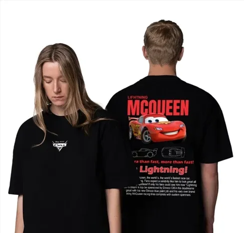 Kit 2 Camisetas Casal Oversized Relâmpago Mcqueen e Sally Masculina e Feminin